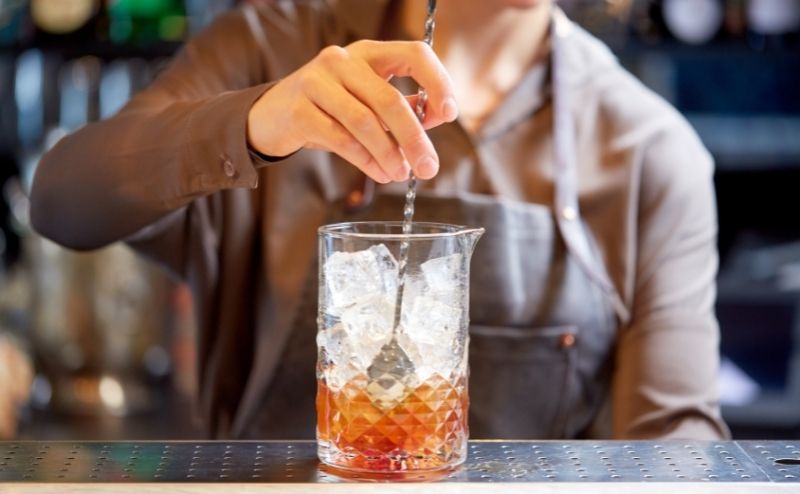 需搭配一個攪拌杯(mixing glass),將冰塊與材料透過攪拌的方式將酒體冰鎮。有別於搖盪法常常無法精準控制冰塊溶化速度,攪拌法可更準確的確定融冰量來保持酒體風味。通常對酒感較要求且強烈的調酒會使用此手法並搭配短飲杯(馬丁尼杯)。